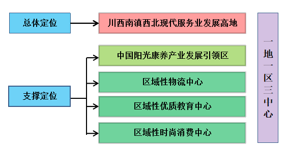 4.“一核一轴两翼”。四川省服务业空间布局,即成都服务业核心城市,成渝服务业联动轴,川南知识密集型服务业发展翼,川东北流量服务业发展翼。