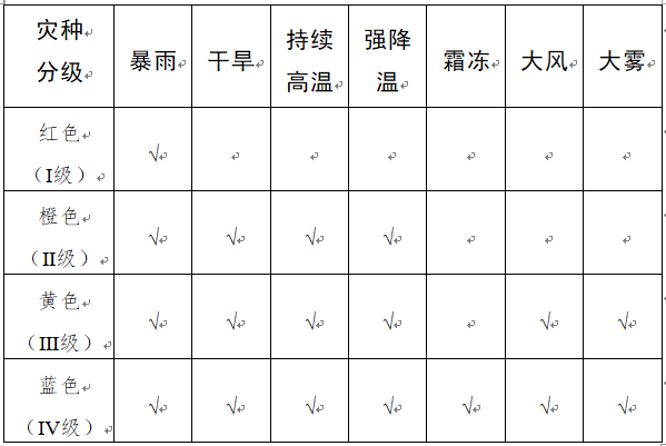 注:本预案规定的预警标准适用于市级气象灾害预警。