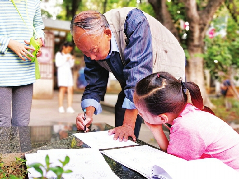 跟张伟学画画的石薪阳盯着张伟的背影,动情地说道:“张爷爷真的好辛苦,我们休息他都不能休息,还要一直教别的小朋友画画,看着真的好心疼,希望张爷爷的身体能一天比一天好。”